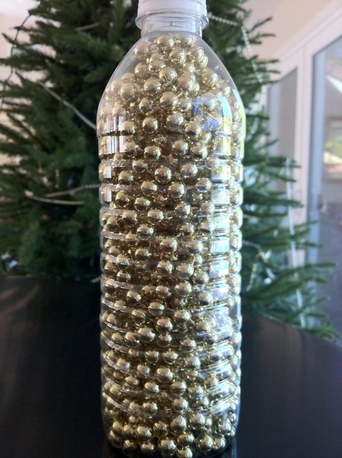 Use a water bottle or Gatorade bottle for your beaded garland. Next year when you pour it out it won’t be a tangled mess. Genius!
