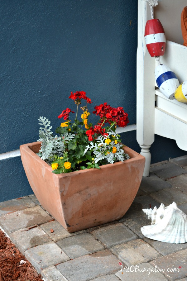 I’m not a big gardener, and we don’t have any landscaping in our yard…yet 🙂 We still have patches of mowable weeds in the front since it was the construction access last year. What I do have to make our home welcoming is a few colorful pots of flowers to greet all who walk up to the door.
