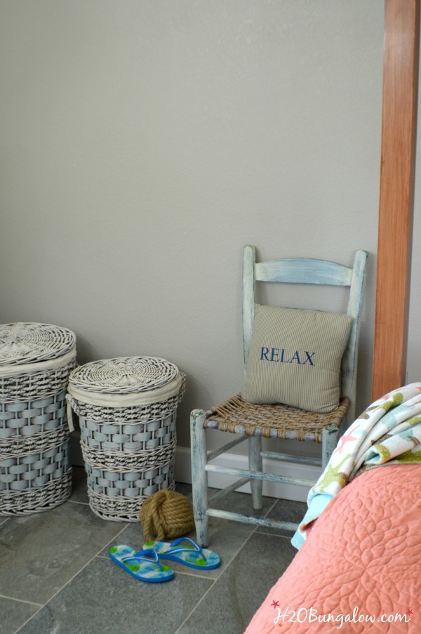 The basket and chair look so much better! I love the combination of white and turquoise and the dry brush technique you used. Beautiful!