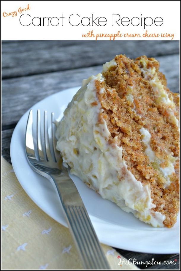 The next big secret to this fantastic mouth watering, moist carrot cake recipe with pineapple cream cheese icing is the flavor is always best the day after its baked. Cover and refrigerate overnight. Serve the next day.