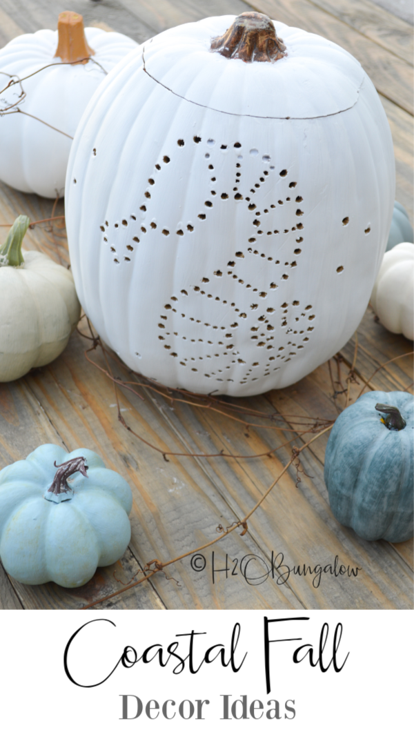Carve your pumpkin with a drill and make this cute seahorse design. It’s the perfect touch of coastal decor for fall.