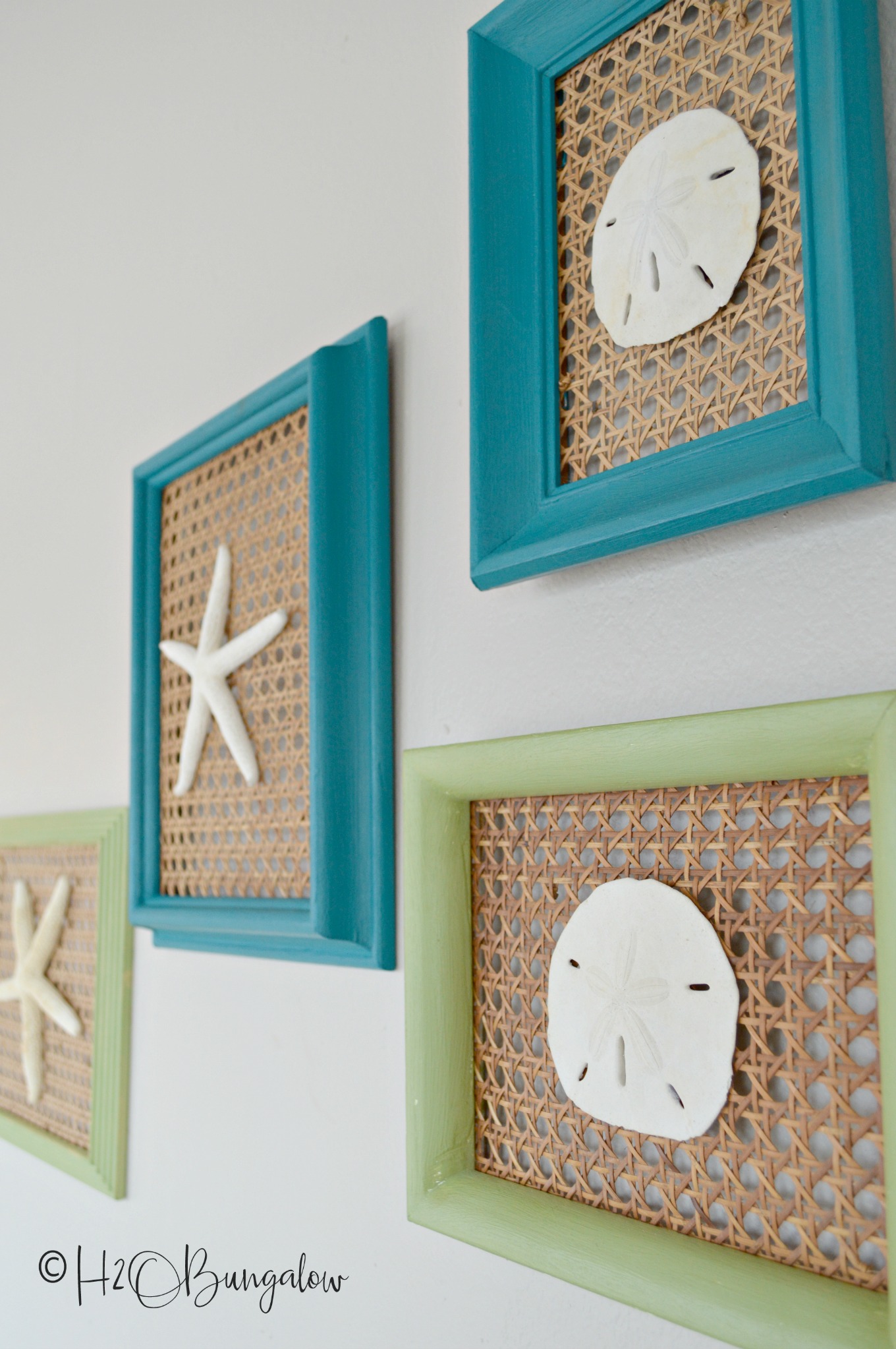 You guys have seen these Coastal Seashell Wall Art frames before. I use them all over in our home. in several photos over the years. You might remember one in my post on How to Style Picture Ledges post in my spring Modern Coastal Bedroom Makeover.
