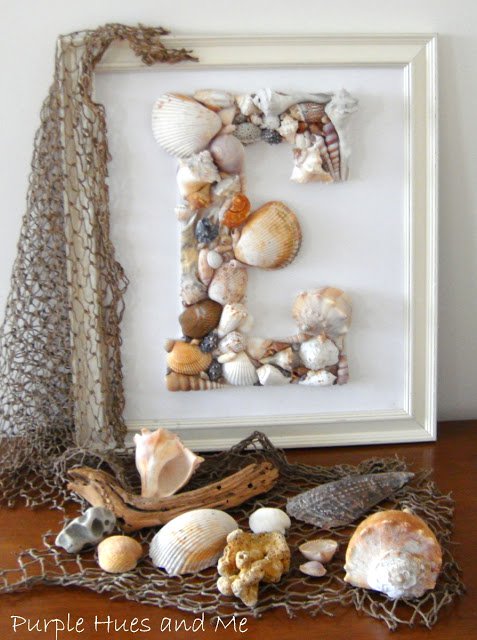 This Seashell Monogram would be so easy to make if you used a large letter cutout underneath.