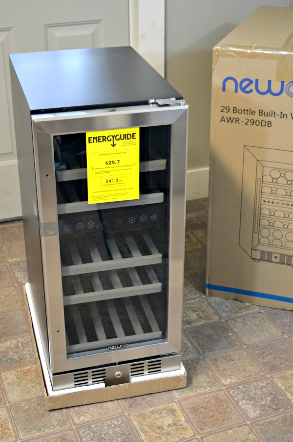 My New Air Wine Cooler was shipped right to my doorstep. The picture below is the 29 bottle unit which I put in the other kitchen unit. The one I used on this side was the 19 bottle unit.