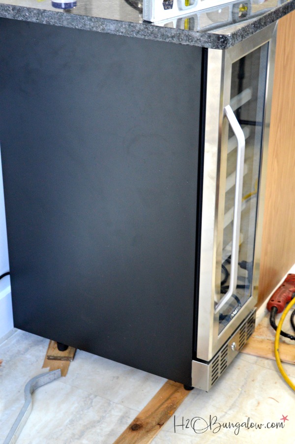 This will prevent the wine refrigerator from moving around as it’s used. The bracket is also removable if we ever need to remove it. It’s also not visible unless you’re stooped down and looking under the granite 🙂
