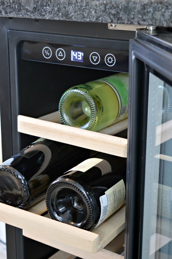 I’m loving the features, the wood shelves and the digital thermostat. Plus, like I mentioned in my post Wine Cooler Shopping and Installing Tips whether you’re planning on DIYing a built in wine cooler or have a place to put it already, it’s important to have a front vented unit.