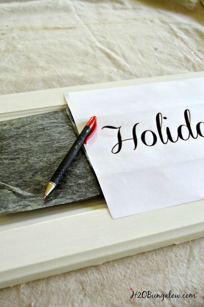 Print out a saying in a size to fit the center flat part and trace it with graphite paper.