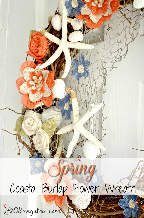 Very pretty Wendi and thanks for the tutorial on how to make burlap flowers. Love the burlap colors you scored at JoAnn’s. Oh, how I wish we had JoAnns here in Canada. Adding the net, rope, and starfish make this perfect for your beautiful coastal home! Oh and p.s. – totally jealous that Spring has sprung where you are.