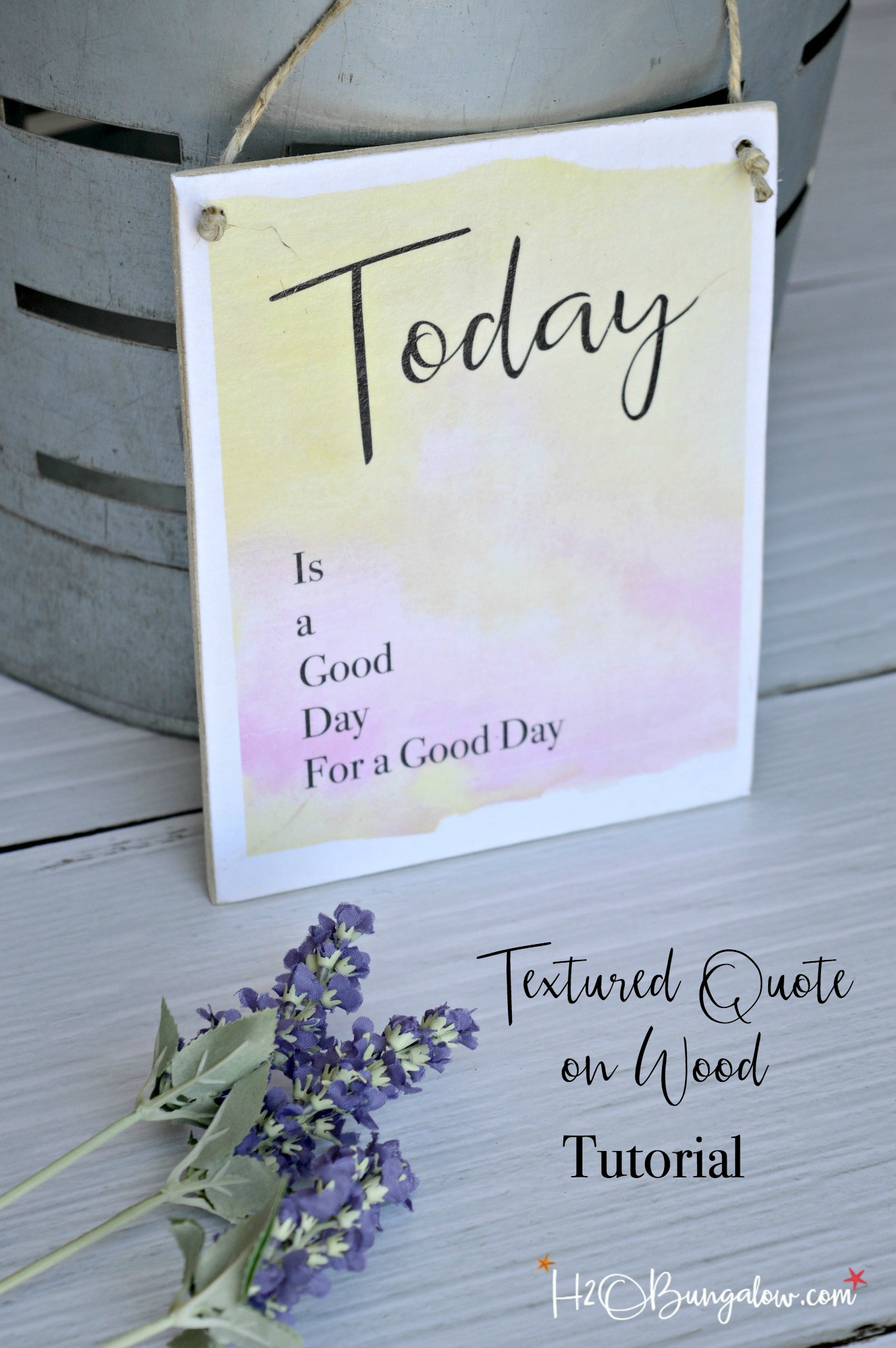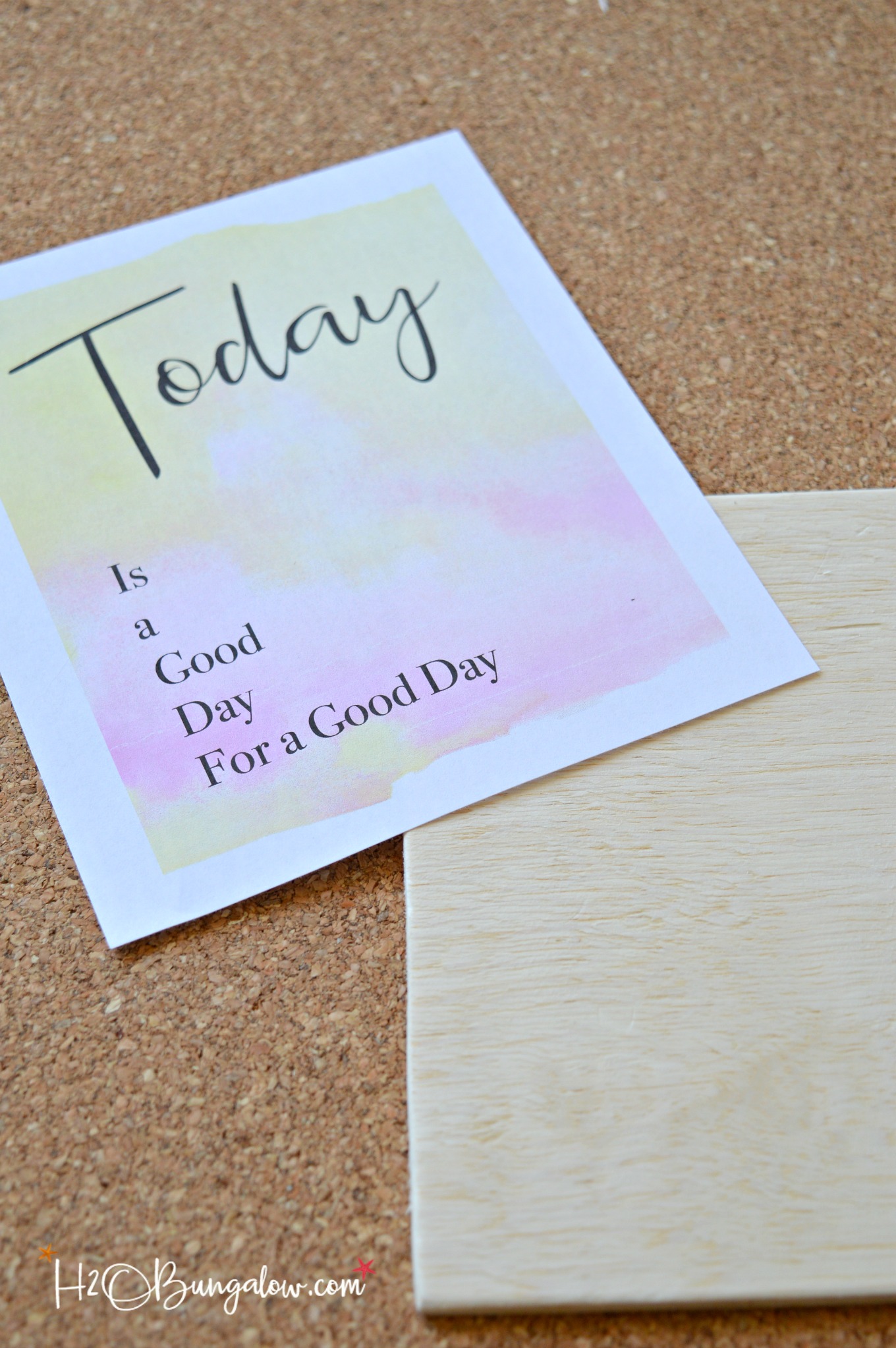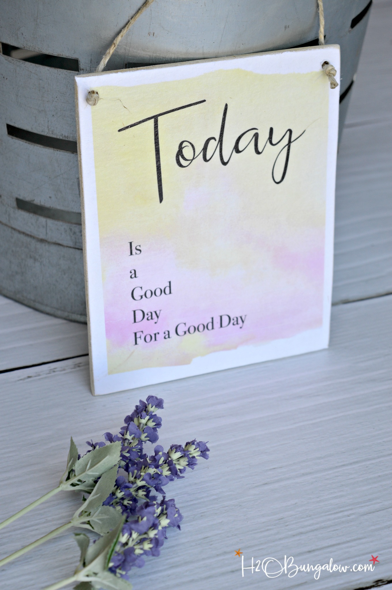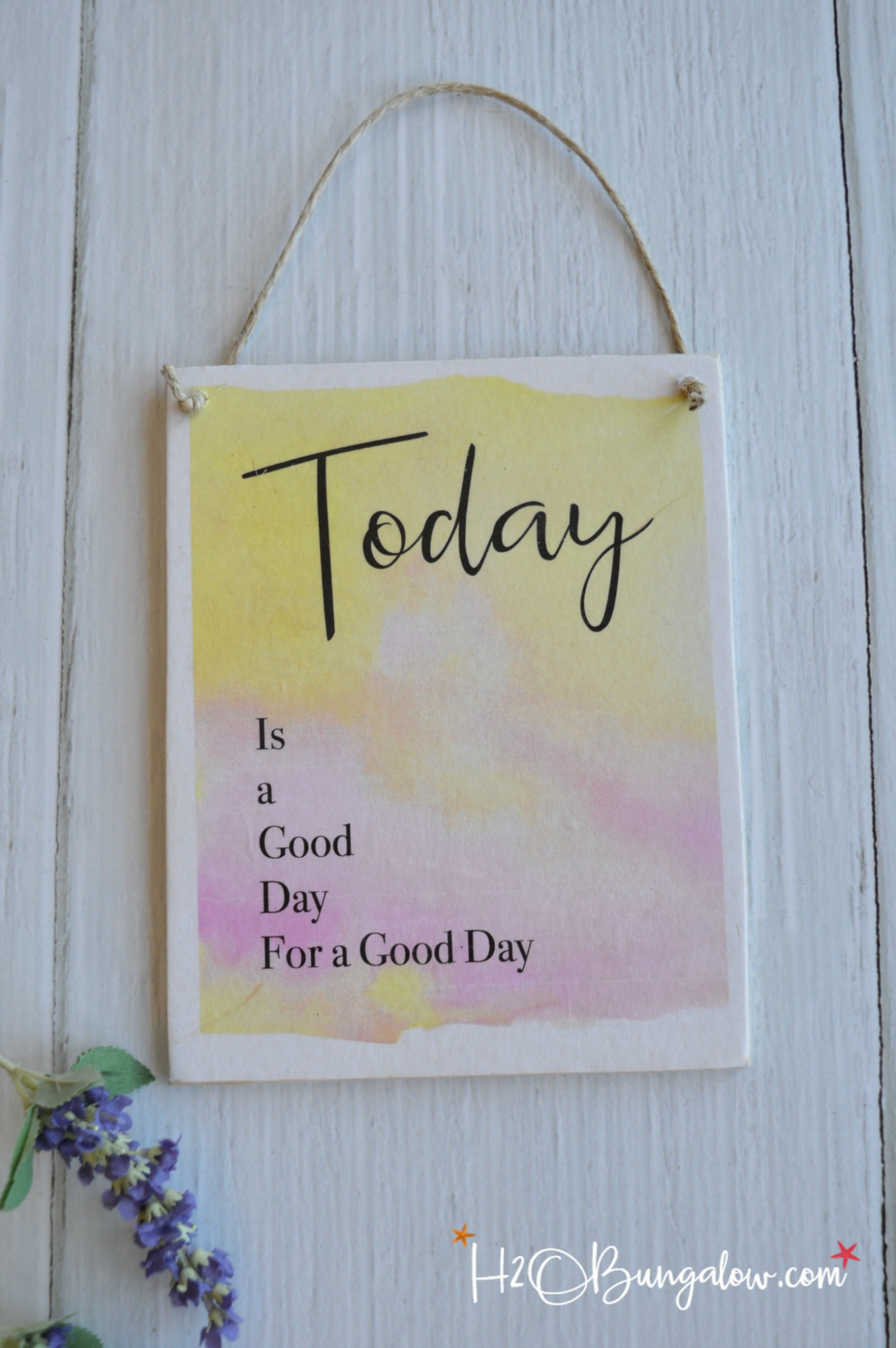 I made it just because. Because the sun is shining and it’s a pretty day out. The sky is a gorgeous blue, it feels like spring with birds chirping and there’s a soft breeze coming in off the water as I sit and write this post. So I whipped up a printable with a fitting sentiment, Today is a Good Day For a Good Day and then decided to make a DIY hanging wood plaque out of it.