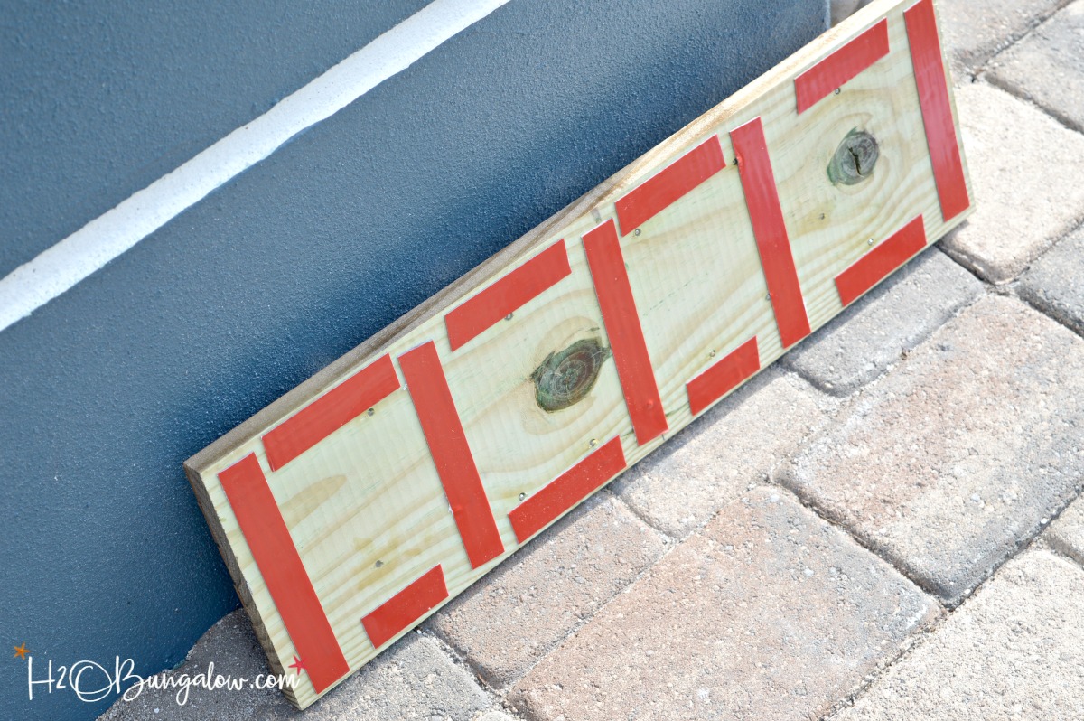 Attach the double sided mounting tape around the outside and center of the back of your DIY address plaque. Press firmly and allow to sit for about 30 minutes or so to allow the glue to adhere.