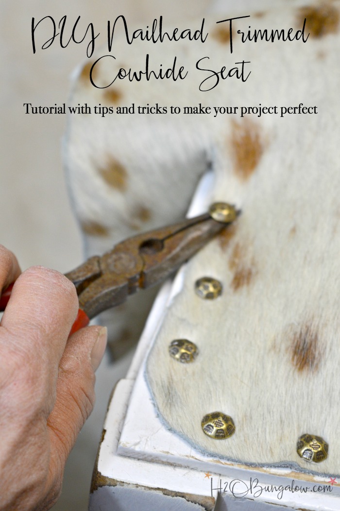Want to make a DIY nailhead trimmed cowhide seat too? Don’t forget to pin this so you can find the tutorial later!