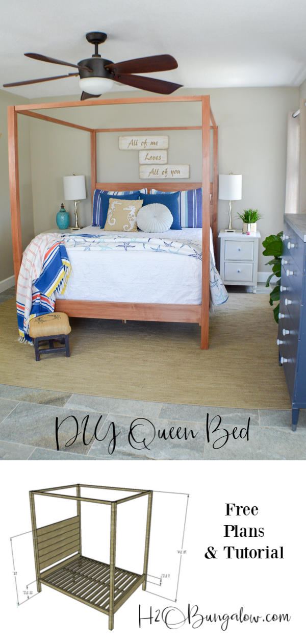 When I share a tour of our home with new friends, my DIY queen bed frame is always a show stopper. It’s a lot of fun to watch people say “No Way!”, you didn’t make that! It’s even more fun when Mr. Bungalow, aka sweet hubby beams with pride and says oh, yes she did!