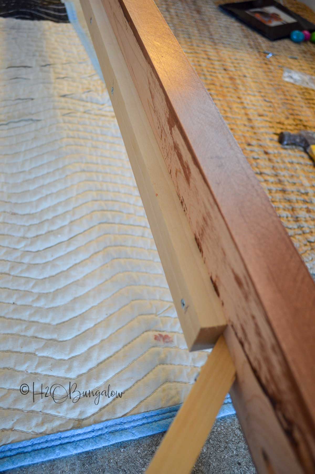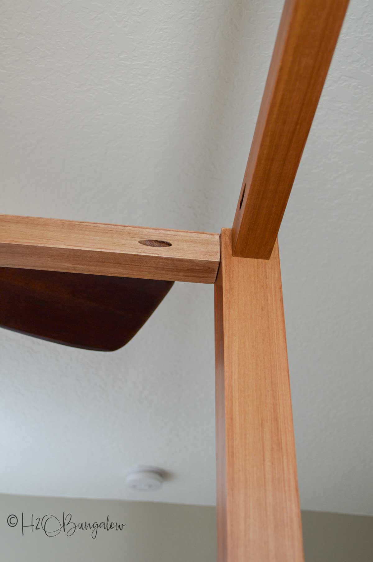 I added small cleats under each joint on the bedposts and struts in the corners for extra strength because of the screw challenge with the hardwood mentioned above.
