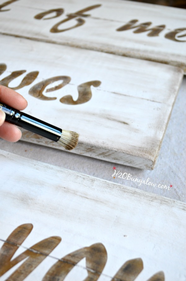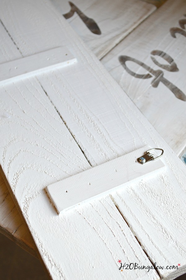 I made 3 plaques each with two 3″ x 2″ boards and secured them a few wood strips in the back. Used my Ryobi Airstrike with 5/8 ” brad nails and then gave them a quick coat of Annie Sloan paint in Pure White front and back.