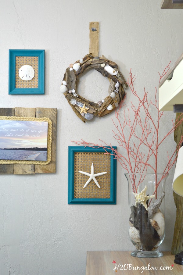 I just finished my DIY seashell and driftwood wreath for my office coastal gallery wall. I think it’s perfect timing since summer is almost here. This is my favorite time of the year, when colorful flip flops are the shoe of choice, cool frozen drink recipes are looking good and we spend lots of time outdoors. What better way to kick off the summer season than to pull out some seashells and freshen up the home decor with a few coastal home decor crafts?
