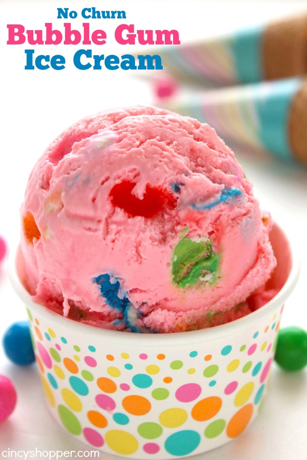 No Churn Bubble Gum Ice Cream by the CincyShopper.com