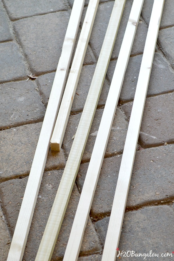 - 24- 1″ x 1″ @ 18″ long. You’ll find 1″x 1″ wood in the trim section by floor molding in your local big box store.