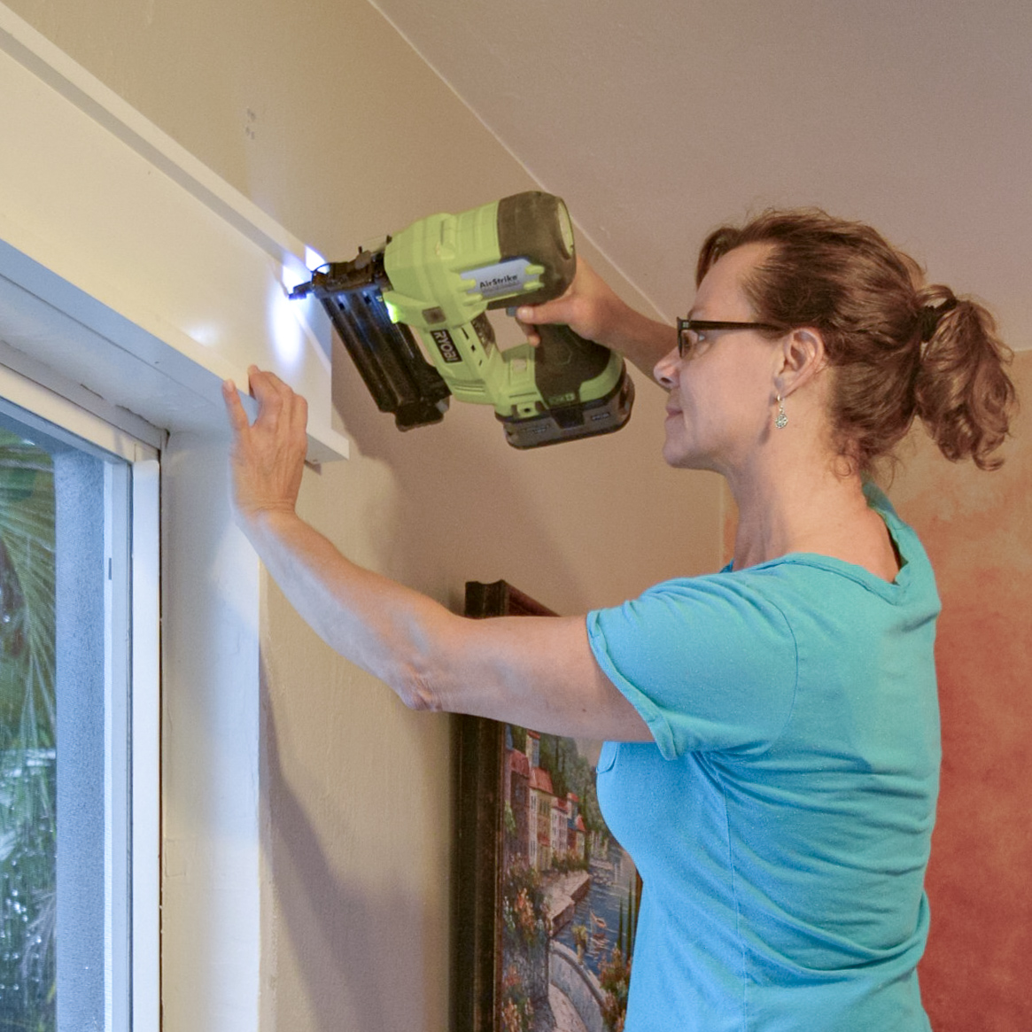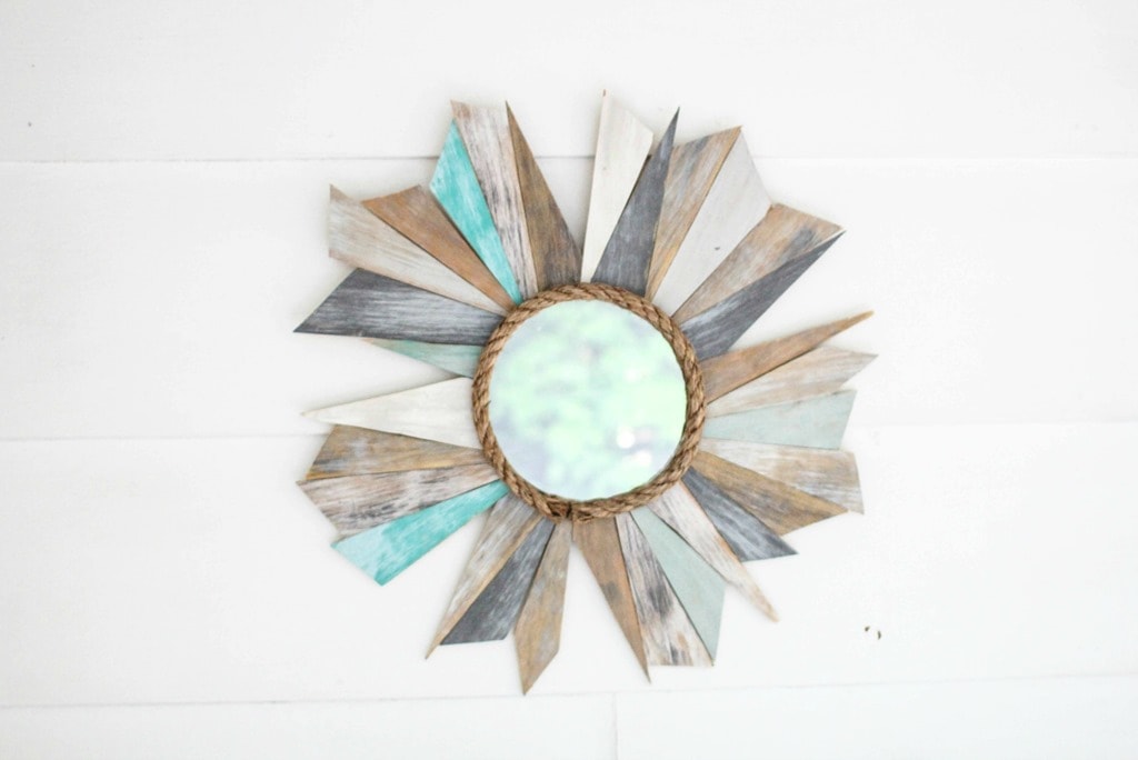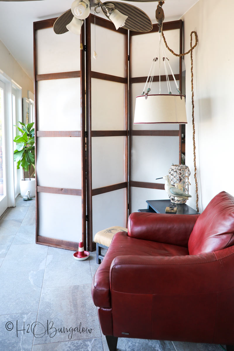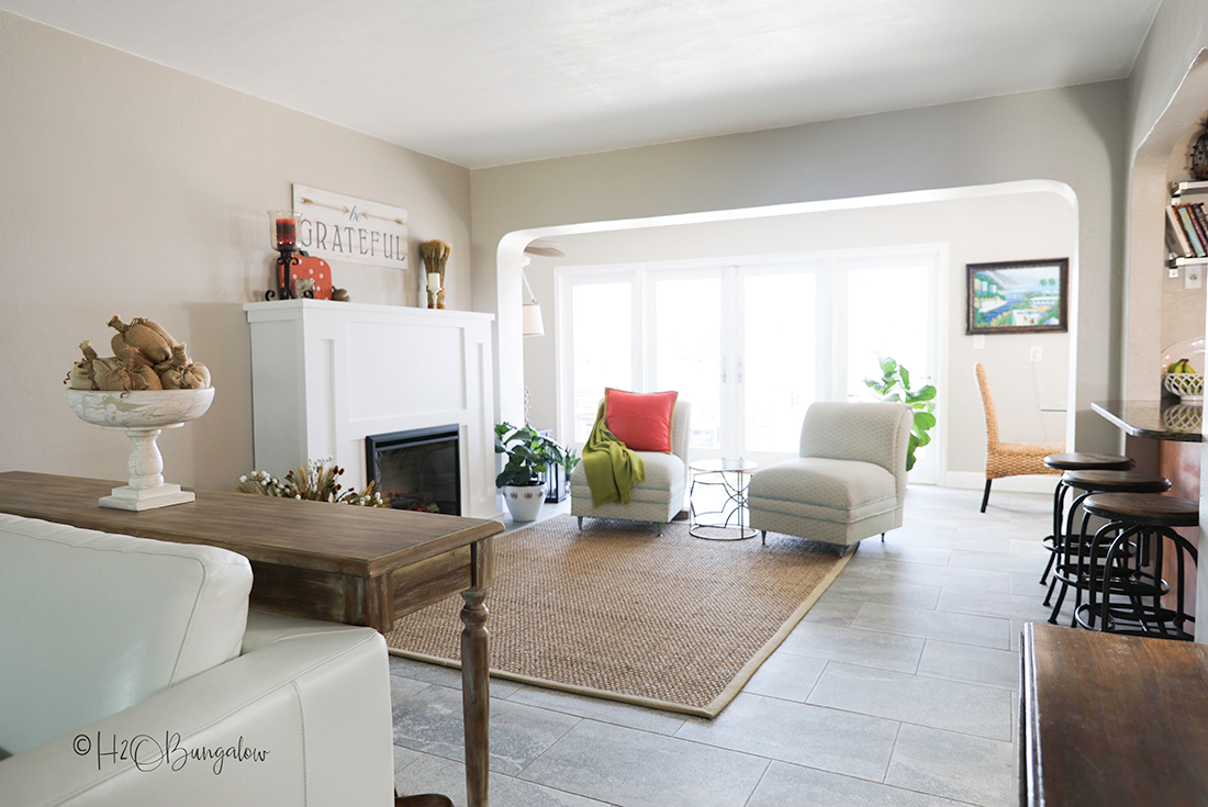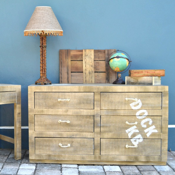 DIY Craftsman Window Trim ⌑ The Media Console I built ⌑ Wall Hanging TV Cabinet ⌑ DIY Live Edge Coffee Table ⌑ Painted Wicker Chair ⌑ Stenciled Sail Away Pillow