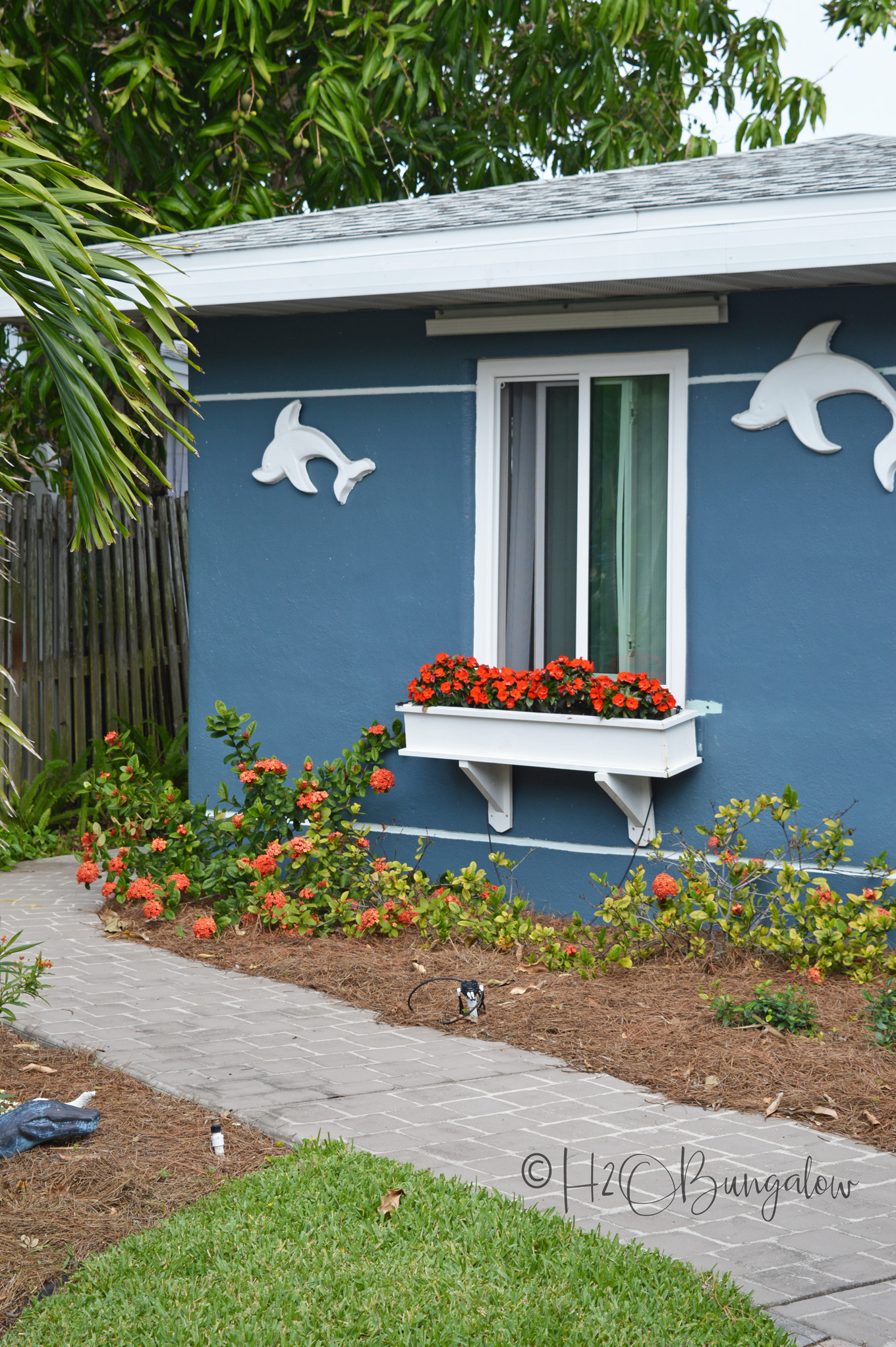 While I liked the concrete dolphins our home came with, I didn’t love them. Even after adding the DIY Flower Box, I thought the house needed more of something to make it cozy.