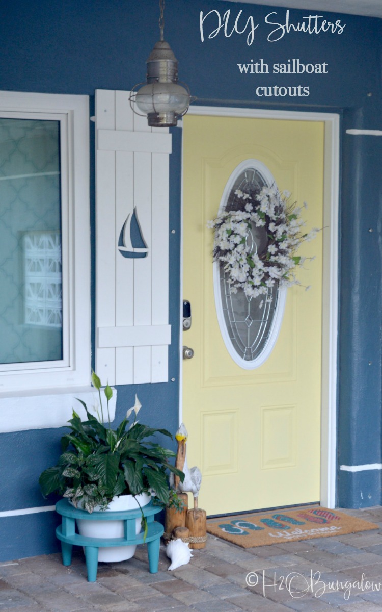 DIY shutters with sailboat cutouts are really easy to make and install guys! These cute pvc shutters added lots of personality to the front of my house and gave it a better bungalow look too. Plus, I saved a ton of cash over buying pre-made ones!