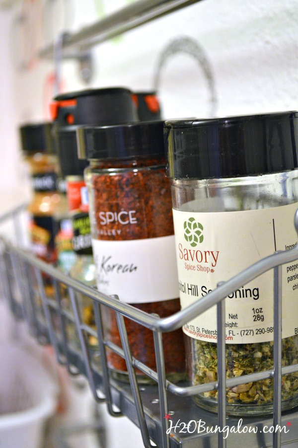 Now that I know how to organize spices in a small kitchen I don’t have to pull all of my spices out of the cabinet to find the one in the very back I need 🙂