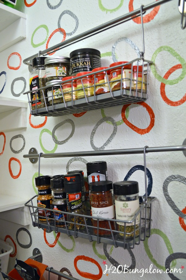 I like this idea Wendi not only because it doesn’t use up prime shelf space but because you can organize those spices into categories (baking for example) and take the entire basket filled with the spices you need over to your work space and then easily put them back again. Now if only I had a pantry or some extra wall space 🙁