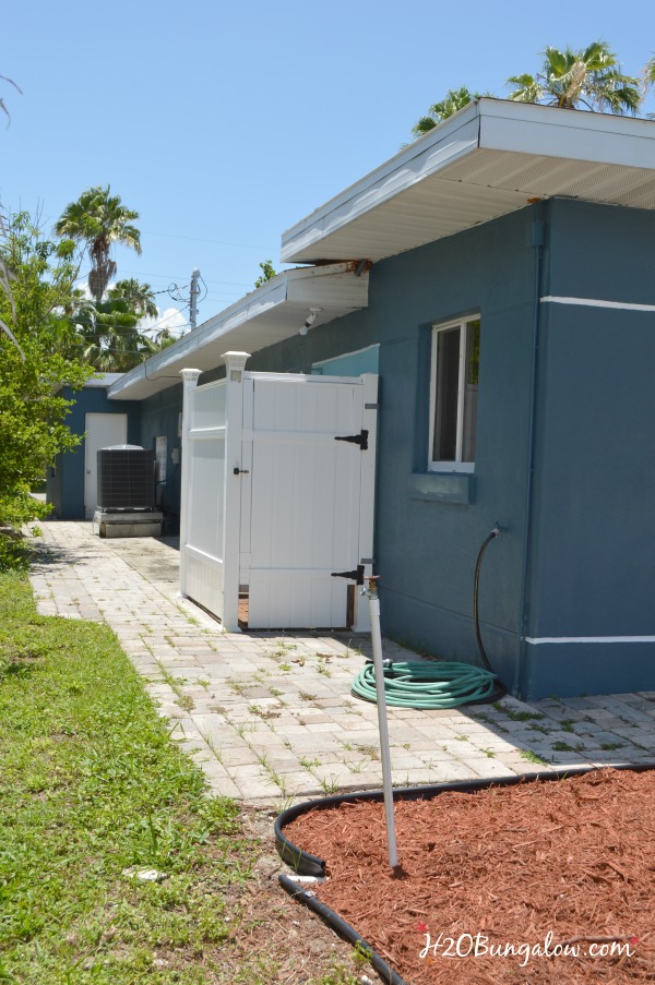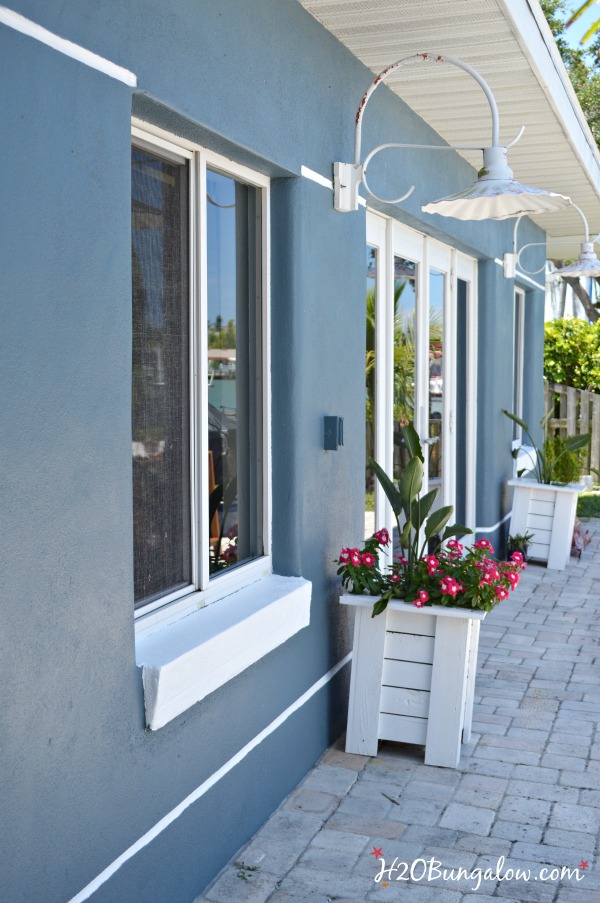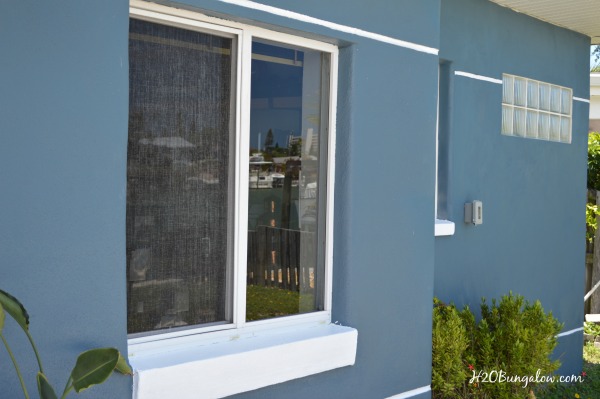 I’m amazed at how well the paint matched! We used Bunglehouse Blue from Sherwin Williams in the Duration line. You can’t tell the difference between the paint I put on two years ago and the fresh paint. That’s nothing short of a miracle since the Florida sun is so brutal. It pays to use the best quality you can afford when it comes to choosing outdoor paint.