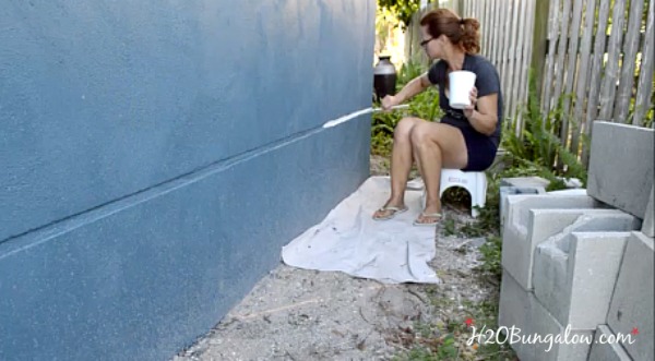 I didn’t need to buy a big or expensive drop cloth to protect the ground. I made a large heavy paper one that worked perfectly, and I moved it as I painted. It was 10 feet long from a roll of heavy Kraft paper that I found in the painting department of my local Home Depot. Doubling it, and taping around the edges made it thick and strong. For extra protection, I also put a line of painters tape along the ground at the bottom of each wall if there was a sidewalk.