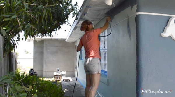 Since I’m sharing how to paint your home with a paint sprayer, let’s not forget a huge item, the weather. We have frequent summer showers, I watched the weather and planned my home painting project to begin when we had a forecast of no rain and low winds for 3 days. The paint, and you will do better in cooler temperatures and lower humidity. I planned around the sun, which meant I painted early in the morning and I painted the walls that the sun wasn’t directly shining on. Since it was May here in Fl and heating up, it helped the paint and me!