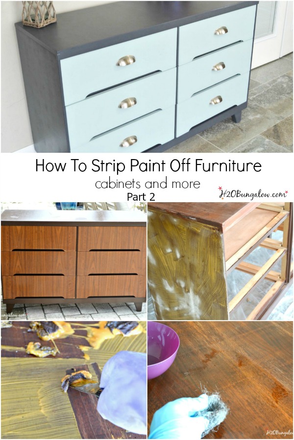 As I mentioned in part 1 of how to strip paint of furniture and cabinets, I’m a huge fan of Citristrip. It doesn’t smell (really it doesn’t!) and it’s easy to use. Which is great because you’ll notice I stripped the paint off this dresser inside my house. If it wasn’t in the middle of the blazing hot and humid Florida summer I would have done this outside.