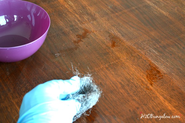 The last step when stripping paint off furniture or kitchen cabinets is to wash down the surface to get off any remaining stripper. I’ve tried a few products, at the moment I like odorless paint thinner the best. Use a fine steel wool or scrubbing pad soaked in the solution and wipe with the grain of the wood. Change out the pad or steel wool as needed. especially if there’s a lot of residue left on the wood.