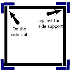 I made a simple drawing of how I attached the side slats to the end supports. See how one end buts up against the side support and the other end of the same side slat rests over the side slat before it?