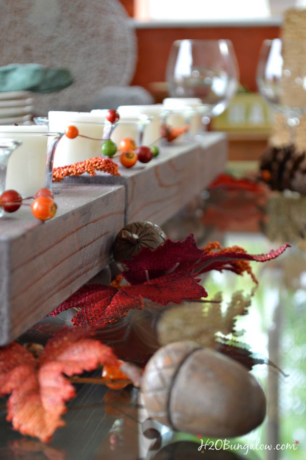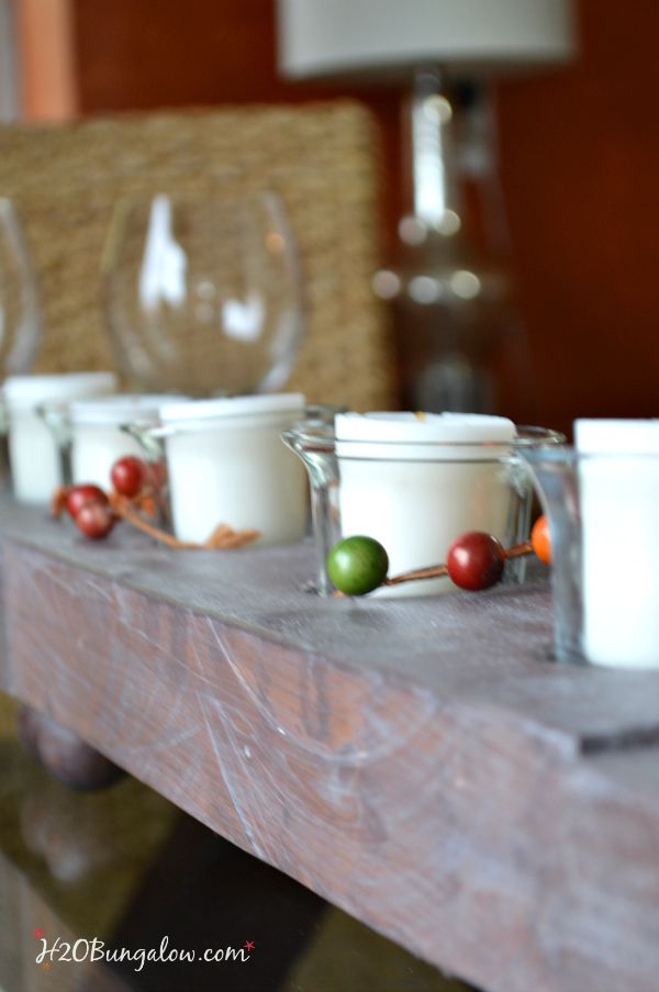I made this in three pieces so it would be versatile. I can spread these out across two tables when we seat 10 on a holiday, or for a smaller table centerpiece I could put all three long wood candle holder pieces side by side for a completely new look. It will be easy to jazz up with a few seasonal accessories or leave plain for a casual elegant look. I’m loving it!