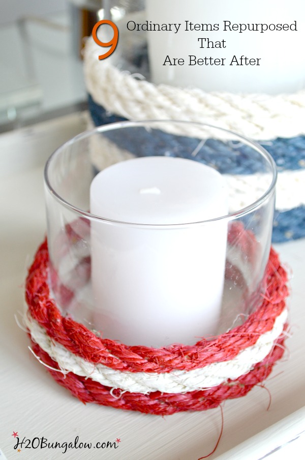 All great re-purposing! I’m in awe at the porcelain tea cup and tea pot. Super pretty but wouldn’t last long in my yard with three active kids. I love the simplicity of your nautical rope candle holders. Visiting from Inspiration2 party.