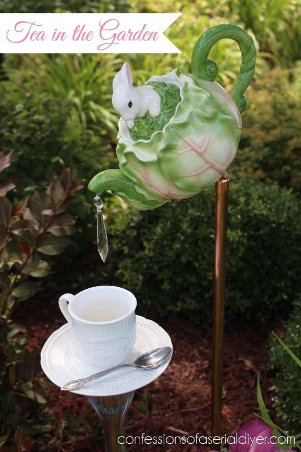 Or pass a chipped teapot at the thrift store without thinking about this darling re-purposed garden art in a pretty yard with flowers.