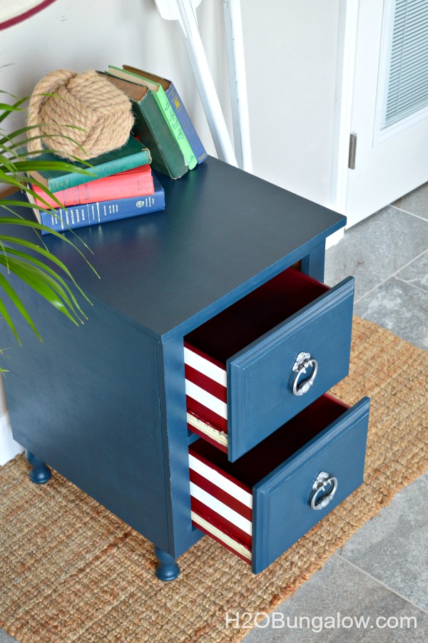 I love the blue color you used for this piece and adore your striped drawers. Cute, cute!