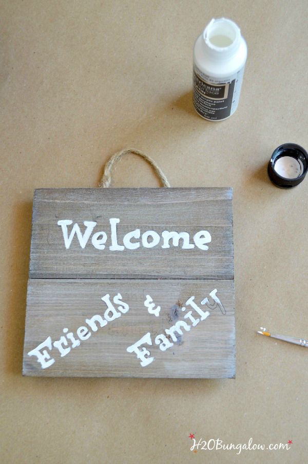 Print out the sign. Use graphite paper to transfer the words onto the plaque by tracing over the outside edge of the words. A fine tipped brush like size “0” works great for painting small details and lettering with beautiful results. I have a set of paintbrushes similar to this and I use them all the time.