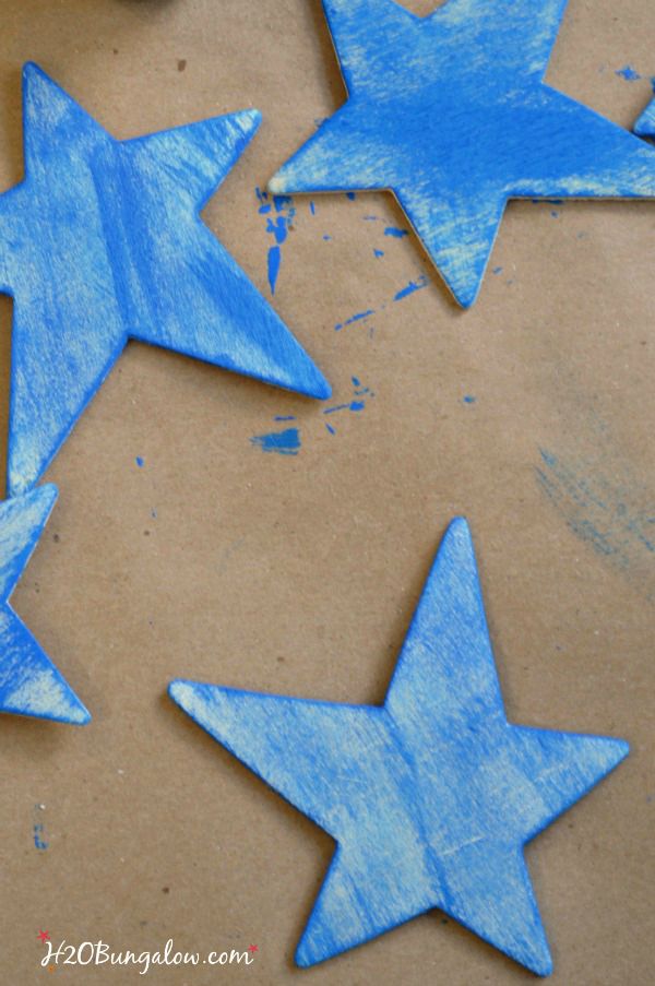 Next, dry brush the stars with the blue paint.