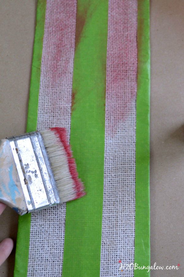 Use Frog tape to make stripes on the burlap ribbon and dry brush with the red paint. If you want to use my welcome sign, you can download the free sign here or click on the picture below. Please use it for personal use only:)