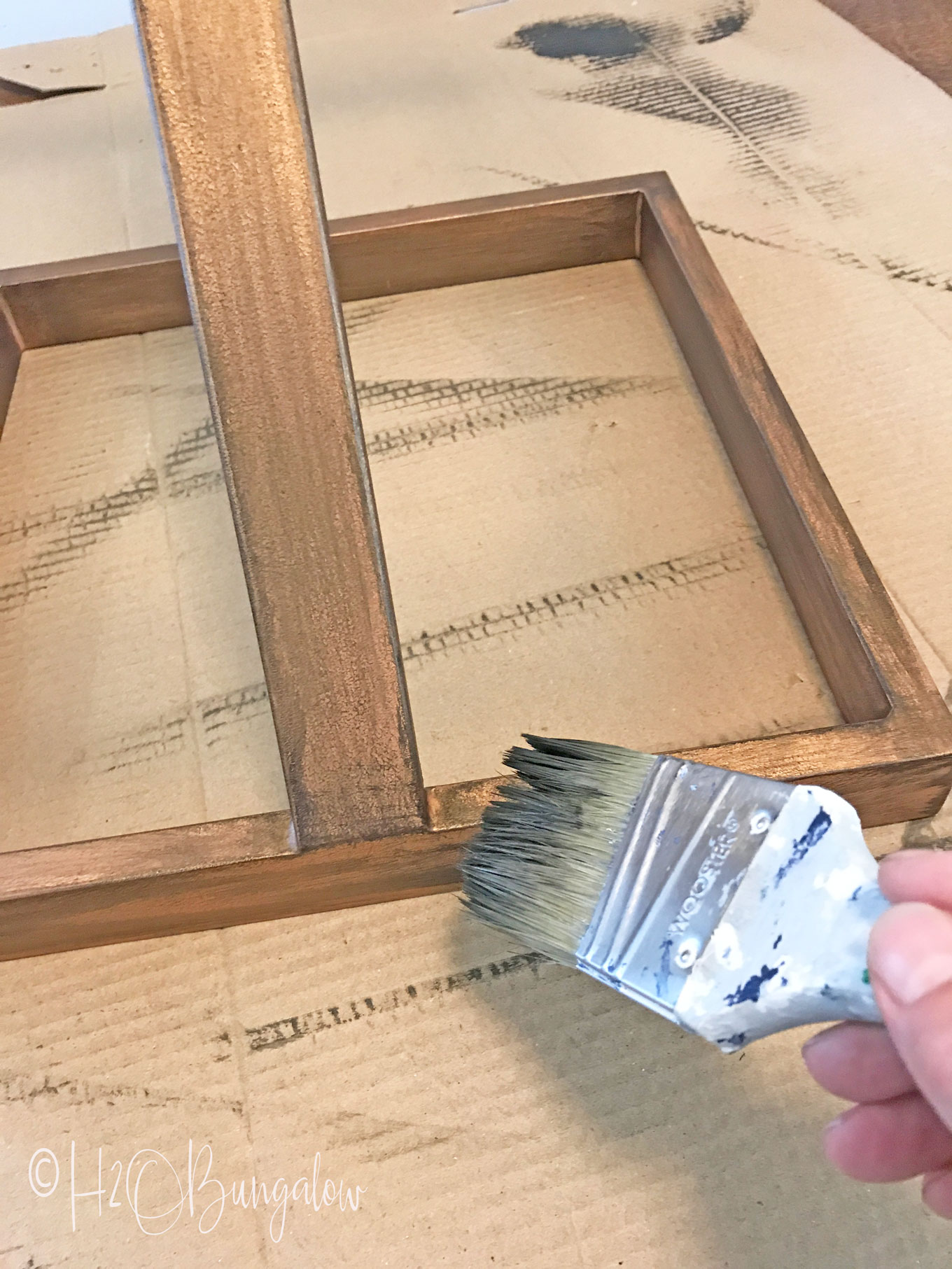 I loved the bold color of the metal paint alone, but knew it wouldn’t look good in the room I wanted to use it in. I toned the color down a lot by dry brushing.