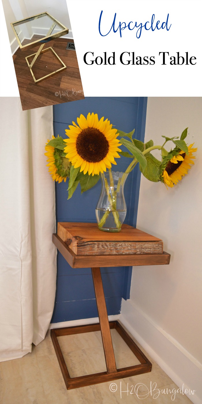 Can you think of other ways to upcycle metal and glass tables like my repurposed metal and wood side table? I can see adding tile inserts for the top, or maybe slate. I also liked reusing the glass top for this metal table after the frame is painted and updated.