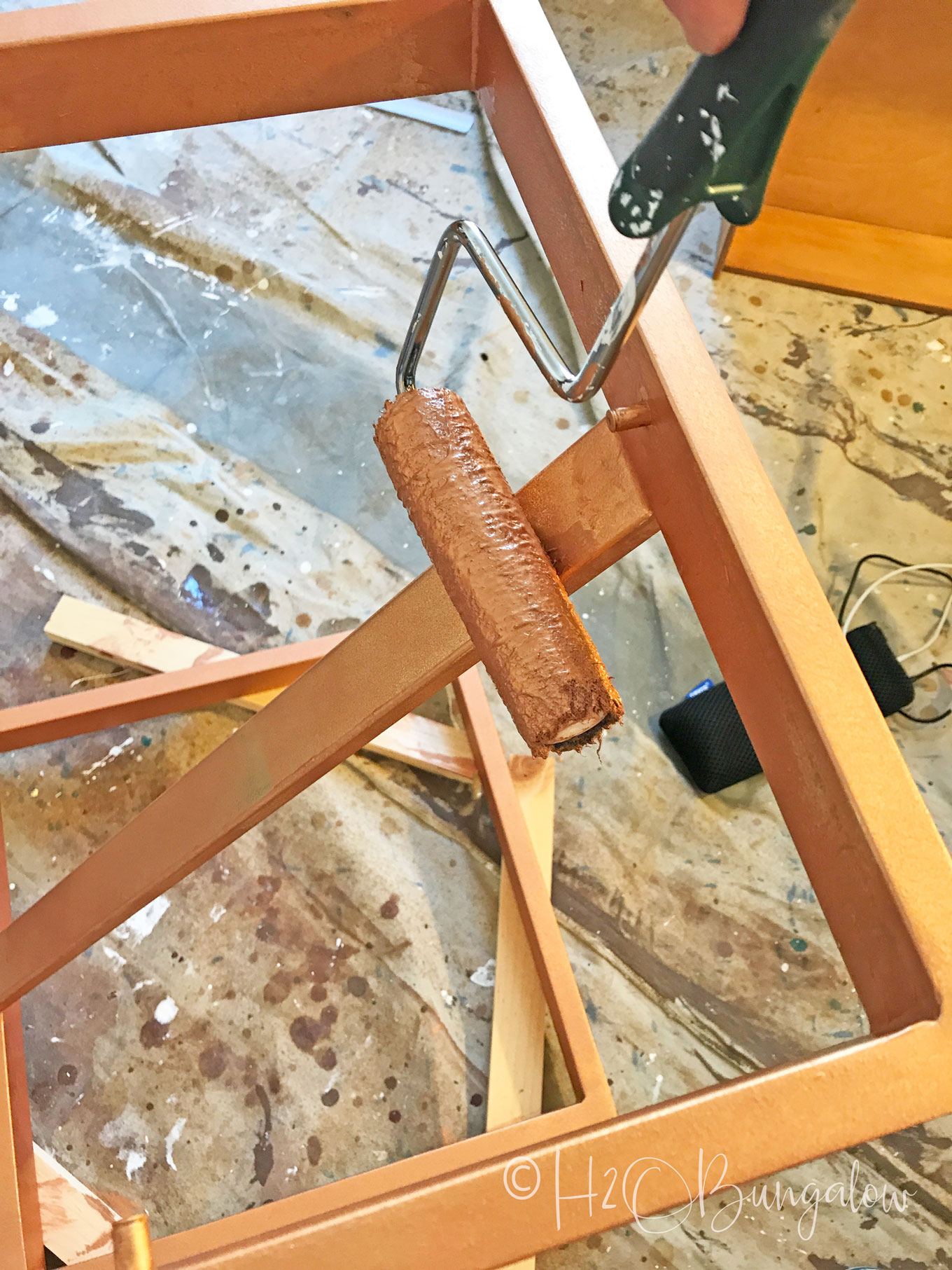 #2. Use a small paintbrush and dab paint into corners and areas the roller won’t get to easily. Roll a thin coat of Beyond Paint over the entire surface. Let dry and follow up with one or two more coats as needed. Allow to dry overnight.
