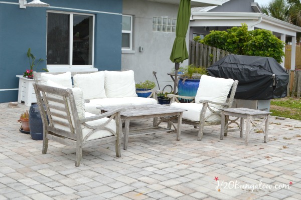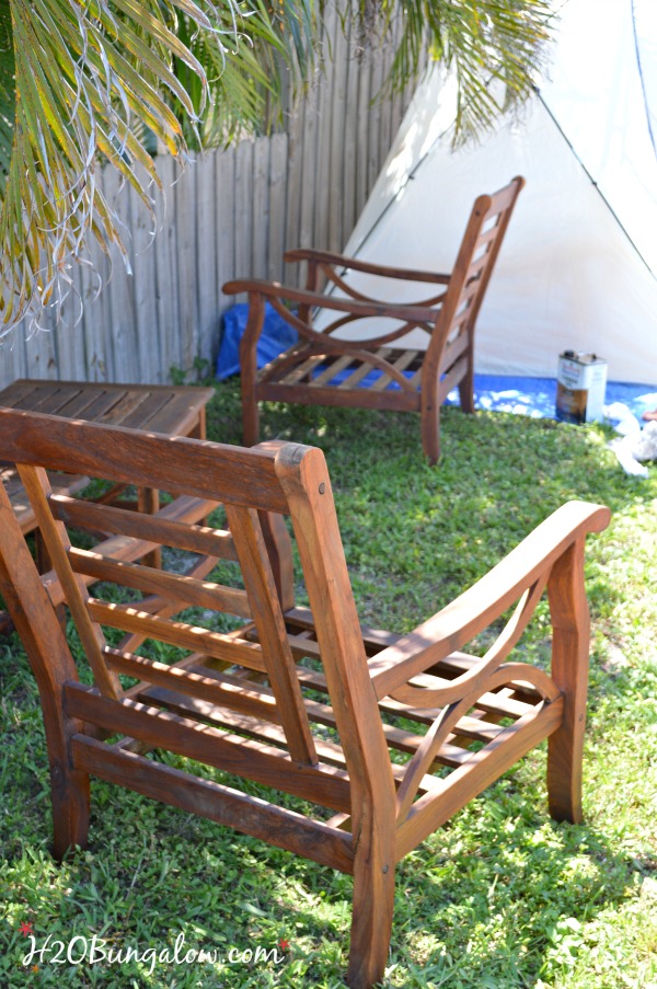 Even with the outdoor DIY projects transforming my backyard, my teak furniture didn’t look good. In fact, I think it was bringing down the rest of the patio 🙁