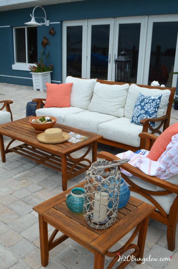 I’ve had a love hate relationship with my outdoor teak furniture for the last 3 years. I’m loving it now of course, since all the work is done. To me, all outdoor wood furniture is gorgeous when it’s new or is fresh from an outdoor makeover. My goal is to keep my furniture good looking as long as possible, years even. Today I’m sharing my tips and tricks to restore outdoor teak furniture to save time and make the finish last longer for those of you who live with the same love/hate dilemma of outdoor wood furniture.