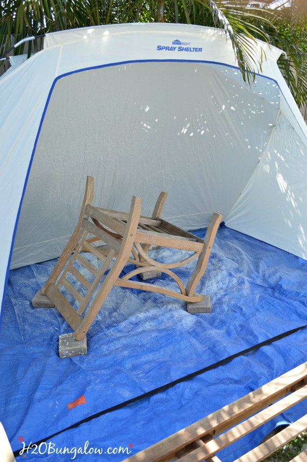 I love my Paint Shelter for lots of projects. It protects the surrounding area from overspray and the painted surface from dust and wind while I’m painting. It’s also a good shelter from the sun if I’m working outside. The Paint Shelter assembles like a camping tent and can be put up in a few minutes. Want a closer look? Here’s a post with a video I shared a while back showing how to assemble a Paint Shelter.