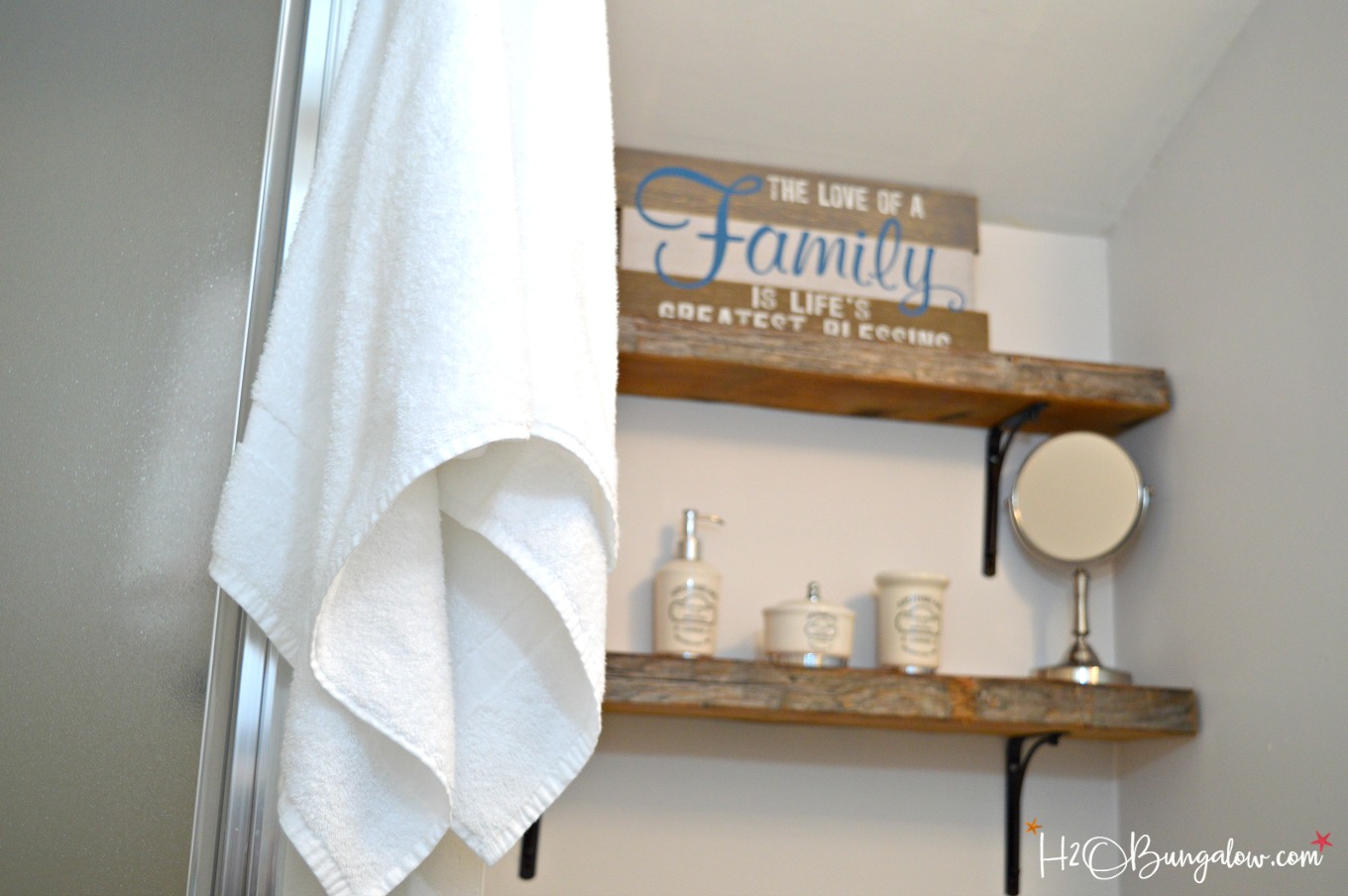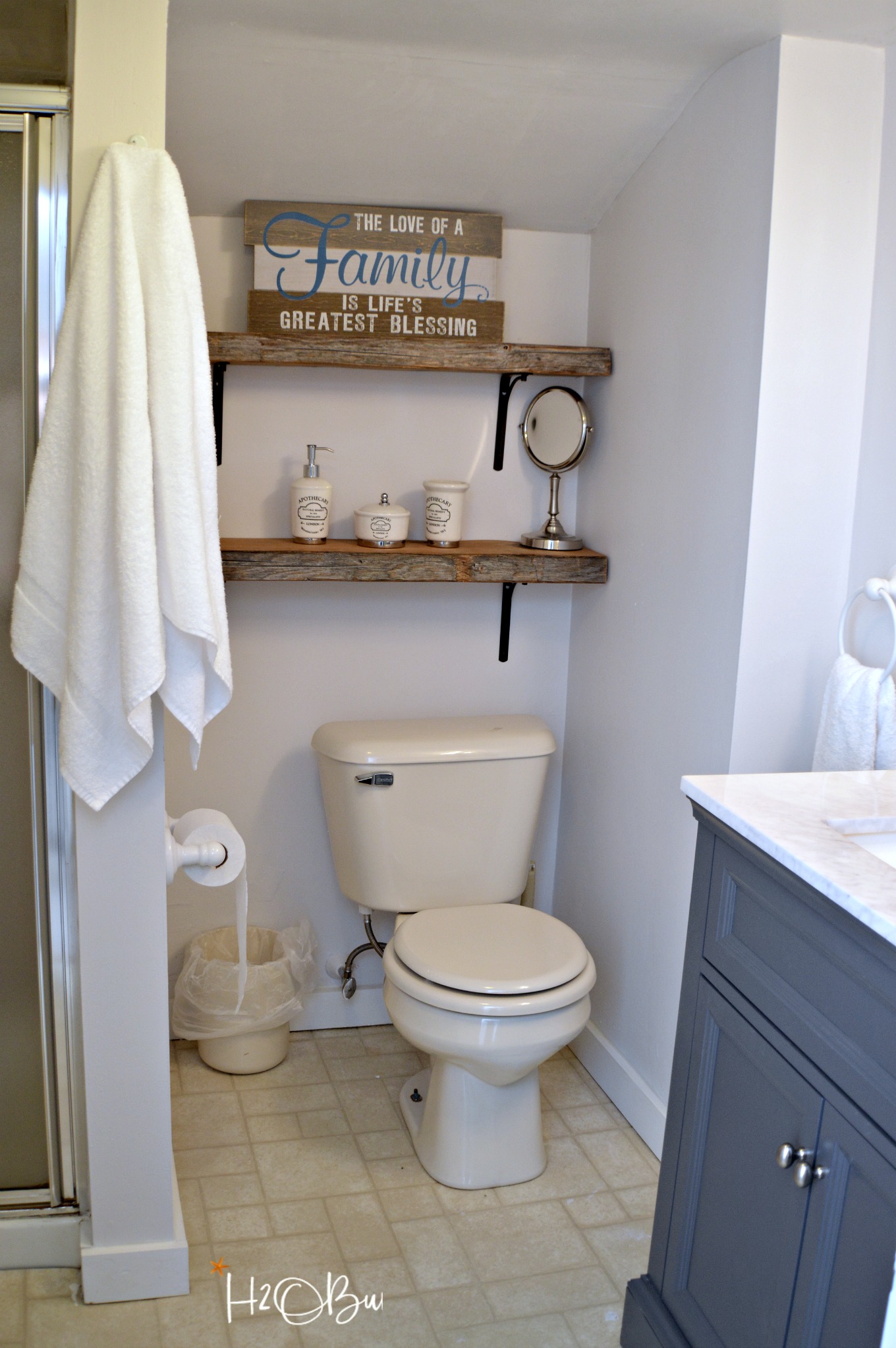 One thing I’m not short on is DIY projects in the North House. There’s still a ton of painting left to finish. The upstairs bath needed a refresh in the worst way! It’s located on the second floor and is the main bath for the house. After tackling the downstairs bath that sits off the kitchen and making it so darn cute with the new planked wood wall and adding a pallet wood wall to the other small bath, this bath wasn’t so looking so pretty 🙁