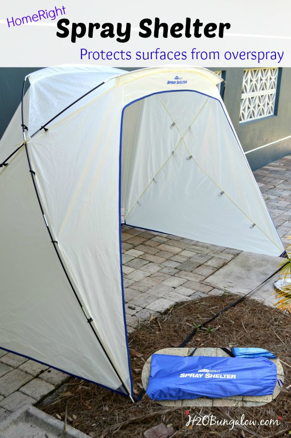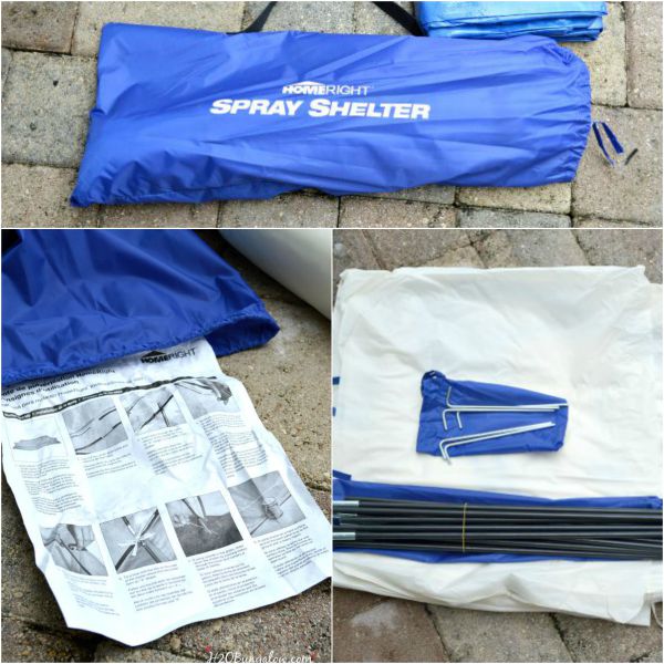 I thought about building a paint booth. But that’s all I did..was think about it besides, I have no where to store something like that. When I painted my awesome deck chairs for our dock I tried taping plastic along our fence and over the bushes. It kind of worked until the breeze kicked in. I think my contact at HomeRight felt sorry for me because she sent me an email and asked if I wanted a Paint Shelter .