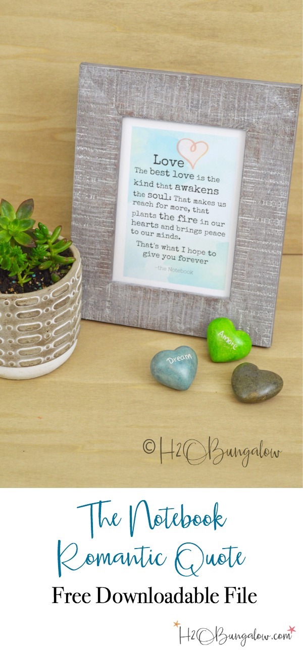 Don’t you love inspirational and romantic quotes.? I do. I love the feeling of reading powerful words that pull at my heartstrings. I was so moved by this quote from The Notebook movie the moment I read it I knew I had to use it for something. I knew it would be perfect as a romantic quote printable and created this pretty file to share with you guys. This is a ten minute DIY project friends.