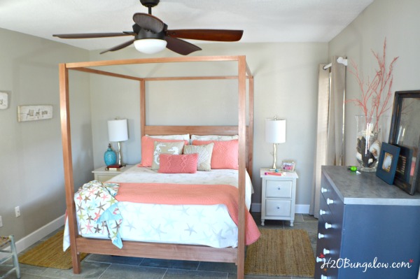 Depending on your project, you may want to seal the wood after applying stain. First, allow it to dry at least overnight before adding a sealer. My favorite sealer for weathered wood is clear wax. The wood feels beautifully smooth to the touch, has a slight sheen and is protected. It also cures over time to a hard durable finish. I like Fiddes Wax. Apply it just like you would on a painted piece of furniture. I used clear wax over the stain on my four poster bed.