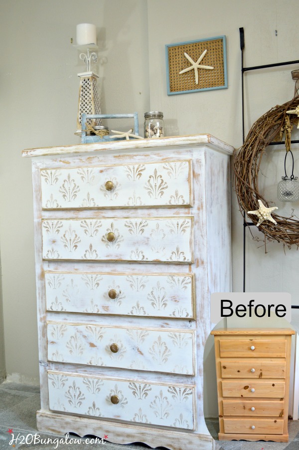 Thank you Michele 🙂 The distressed damask completely changed the look of my old dresser!